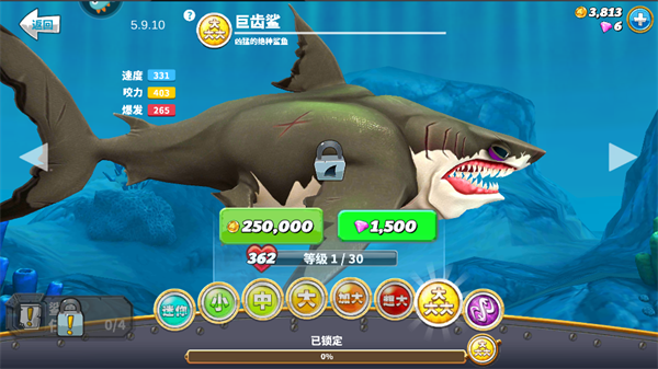 玩家刚进入游戏时,可能会以为鲨鱼最高只能解锁到XXL级,但实际上游戏里还有更高级别的鲨鱼可以解锁,最高能到XX级,也就是巨齿鲨。