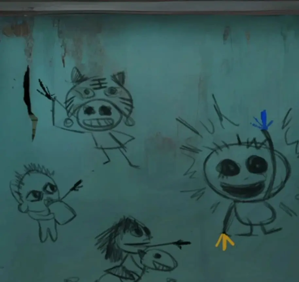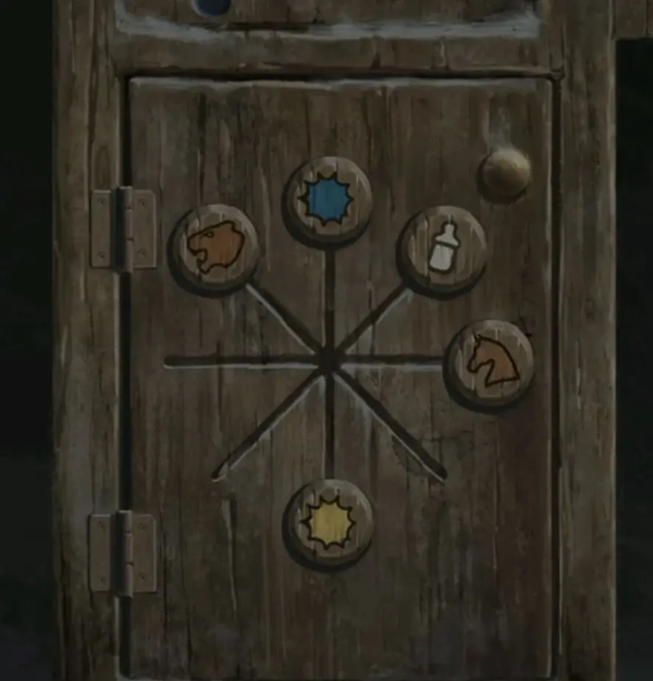 查看左侧柜子上的图案,找到黑板上与之对应的内容,按照黑板上的顺序调整柜子图案,打开下层柜门后能拿到【剪纸小人】和一面【锦旗】。这剪纸小人的姿势看着有点眼熟,和安全通道标志上那个奔跑的小人很像。离开房间后,走廊里会触发老奶奶相关的剧情,似乎是那位盲奶奶出现了!
