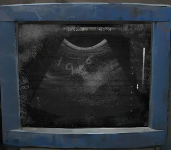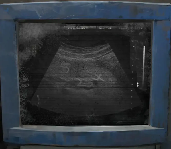 下楼后,老奶奶已经不见了,只留下一张遗像。我把布娃娃放在椅子下方那个轮廓对应的位置,这时唱戏机里掉出了一个【小人偶】,它的外形让我觉得有些熟悉。接着我走进隔壁房间,将人偶放进抽屉对应的位置,抽屉掉落之后,我得到了一个【探头】。最后把探头装在床头,开始进行探测。