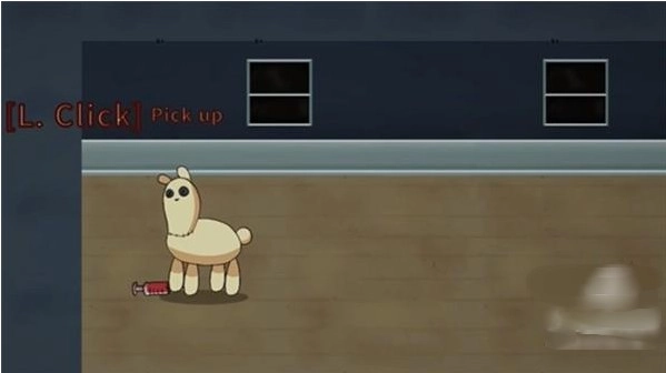 捡起地上的针管,接着向前走,看到两个玩偶后,直接上前和它们对话。
