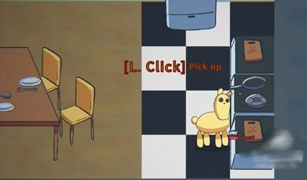 来到右边的厨房,将刷子捡起来,