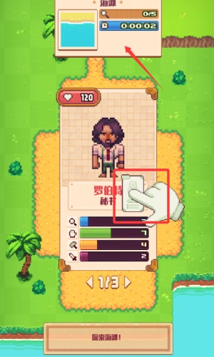 在本站完成安装后,点击打开即可进入游戏,接着点击探索海滩按钮,开启收集资源的任务。