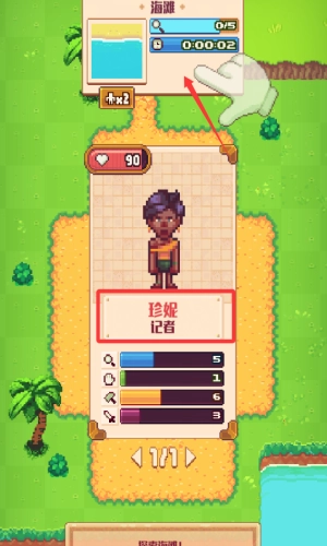 查看角色珍妮属性,准备海滩探索挑战。