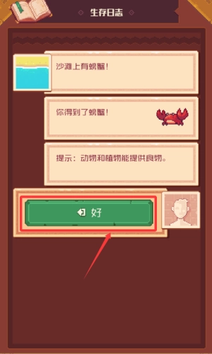 点击好按钮,确认获得螃蟹食物奖励。