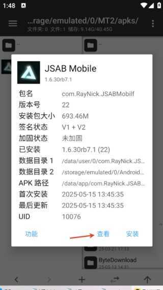 依次进入Android → data → com.RayNick.JSABMobilf → files路径,界面应如图所示。