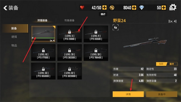 页面里会呈现各式各样的狙击武器,你选好想要升级的装备后,点击详情就行。