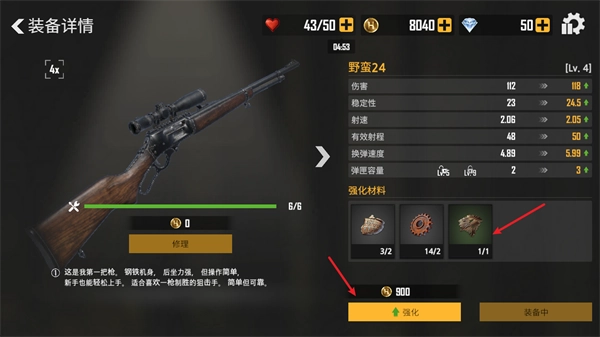 更多武器将在达到指定等级后解锁并开放购买。进入详情界面后,可消耗指定材料与金币对其进行升级。