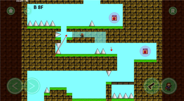 游戏关卡里存在着各种各样的机关陷阱,同时还会有一些怪物来阻挡你的前进。