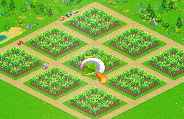 4、每种作物在不同的生长阶段会呈现出不同的形态特征以便于识别。当作物成熟时,点击成熟的农作物会出现一把镰刀图标,通过拖动镰刀图标在所有成熟的作物上滑动,就可以完成对成熟作物的收割。