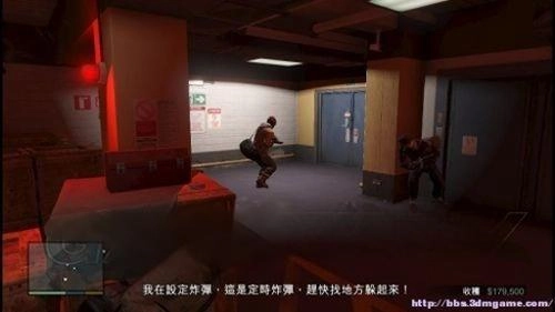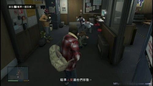 step1.(雷达切换为线性模式)进入银行的玻璃柜台区域,此刻麦可需使用机枪依次对准蹲伏(或躺倒)的三名人质,他们就会主动进入右侧的办公室。