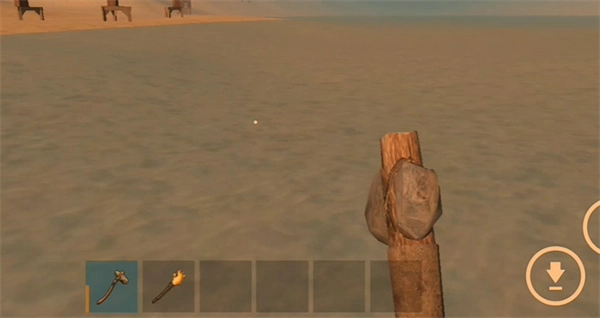 先去挖木头,利用石锤砍树就能得到。