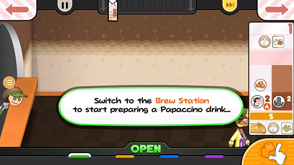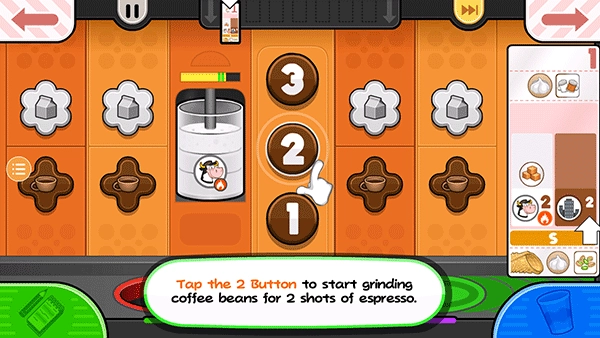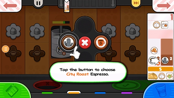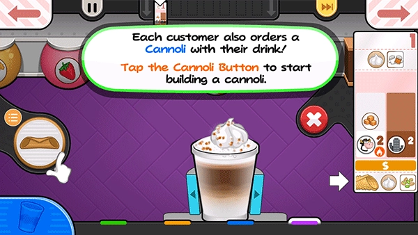 每位顾客都额外点了一杯卡诺里酒,点击“奶油卷”按钮即可开始制作奶油卷。