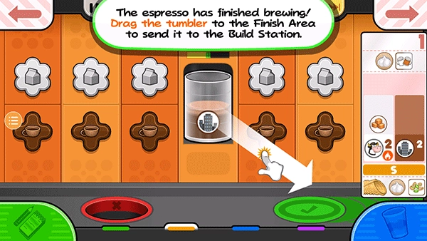 浓缩咖啡煮好了!拖动不倒翁完成区发送到建设站。