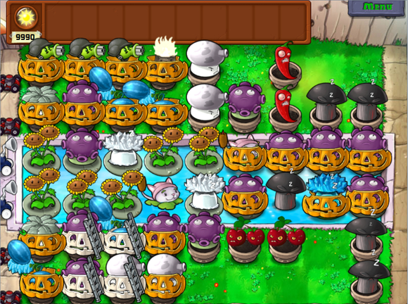 正常搭梯子的话,建议开局就开始搭,(3楼到6楼)这个阶段僵尸数量少,种类也不多,基本上梯子搭好的时候,阵型也差不多成型了。