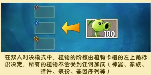 在双人对决模式,植物卡槽左上标识决定植物阶数。