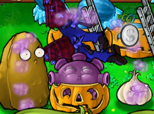 利用大蒜使梯子僵尸改行来为火力猛的一行植物搭梯。