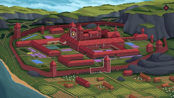 接着操控角色移动到门的边缘,就能看到王国的城堡地图,然后点击亮光所在的位置。