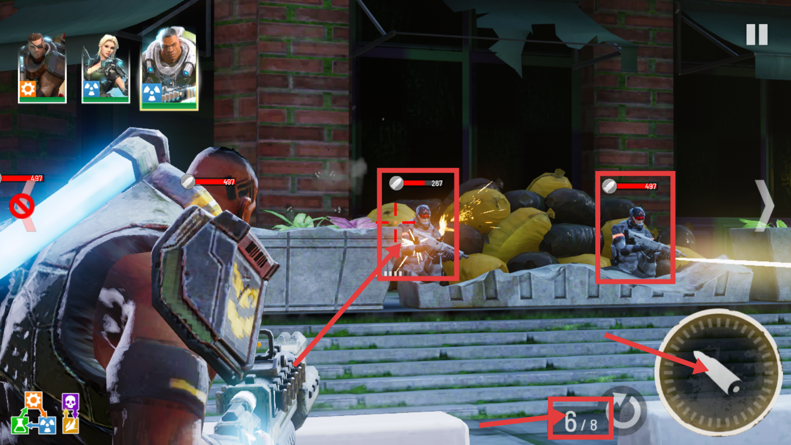 战斗时要瞄准敌人的要害部位,留意弹药剩余量【6/8】,优先解决掉血量较低的敌人,并且要合理运用射击机制来保持持续的输出能力。