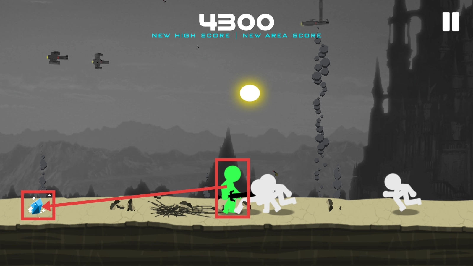 在探索过程中收集蓝色钻石,操控绿色角色战胜敌人,分数现已提升到【4300】,继续积累以获取更高分数。