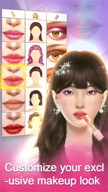 操作轻松上手:只需轻触或滑动屏幕,就能完成上妆、修饰面部五官等操作,简单易懂,适合各个年龄段的玩家体验。 化妆工具品类齐全:游戏内配备了丰富的化妆工具与化妆品,涵盖眼影、粉底、腮红、口红等,同时还有美甲工具及各类饰品,足以满足玩家为角色打造多样妆容与造型的需求。 造型设计风格多元:玩家可以为角色设计当下流行的发型,尝试烫发、染色等不同风格;还能依据不同顾客的需求和场合,比如酒吧、家庭晚宴、狂欢派对等,打造契合氛围的妆容,并搭配对应的服装。