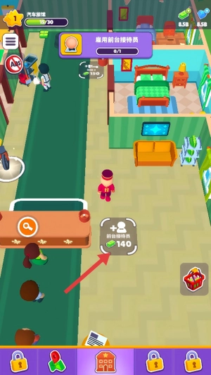 当收益稳定后,可进入员工界面聘请前台接待员,以此减轻接待工作的压力,提高服务效率,进而让每日营业额得到增长。