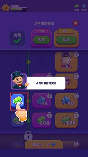 领取旅馆基金奖励,获取资源,用于升级和扩展旅馆。