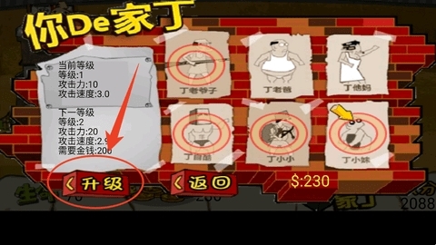 丁小小射弹弓(优先升级)+丁老妈丢拖鞋(次优先)+丁自裤丢哑铃(最后)+丁小没丢爆竹(第三优先,第6关之后使用),按照这个顺序绝对能通过前六关。