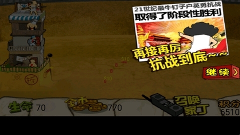 《钉子户大战拆迁队》这款曾风靡一时的经典策略塔防小游戏,想必不少朋友都有过游玩经历,如今它已移植到手机平台。游戏里,玩家需要消耗金钱召唤家丁,指挥他们抵御拆迁队的进攻,以此守护自己的房屋与宅基地。尽管玩法上和《植物大战僵尸》有几分相似,但整体风格却截然不同。