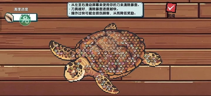 3、在面对海钓所收集到的不同海洋生物时,需要通过不同的方法处理,比如鱼类就需要用到仔细的刮鱼鳞,海龟就需要去掉他们的藤壶。