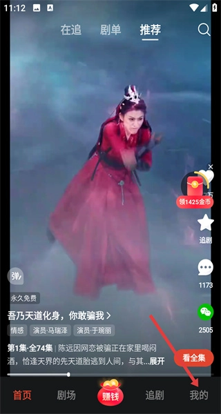 用户进入河马剧场首页后,点击页面右下角的“我的”按钮,即可进入个人中心页面。