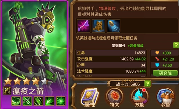 在《魔法英雄》里,具备控场能力的英雄通常都相当强悍,瘟疫之箭不仅自身伤害数值极高,其恶魔锁链所拥有的禁锢敌方的效果更是赋予了它极强的可塑性,而且它还是为数不多能在后期通过觉醒进一步提升自身能力的角色,要是有幸获得这个英雄,尽管放心培养起来。