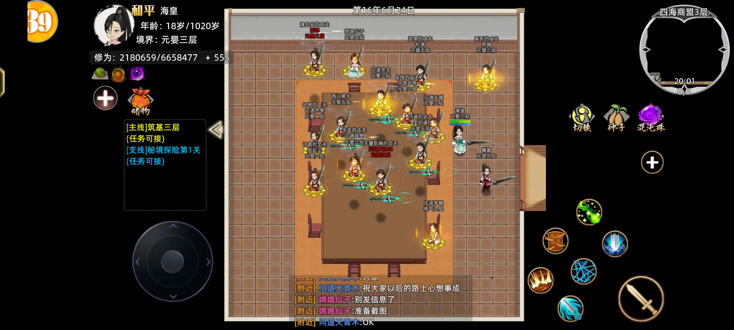 弟子出战功能:弟子能够协助玩家参与战斗。在弟子界面中选择“出战”选项后,通过点击左上角的召唤按钮,即可让弟子前来帮忙作战。