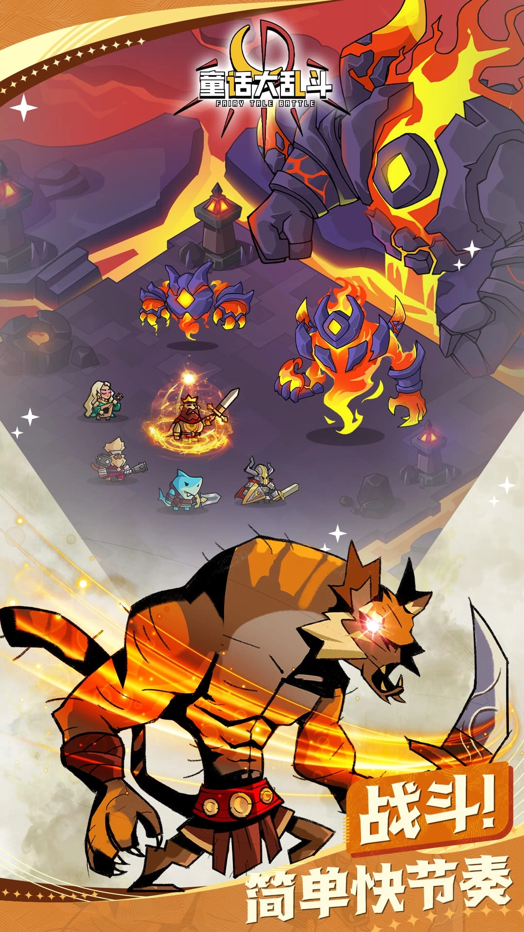 《童话大乱斗》是一款集休闲放置玩法与异世界冒险体验于一体的RPG游戏。在游戏中,玩家将深入探索元素丰富的地牢关卡,通过收集各类资源来建设并发展专属村庄,同时招募、培养来自不同传说的英雄角色,携手构建一个热血沸腾的冒险天地。随着黑暗骑士的突然降临,王国瞬间陷入危机,公主也不幸被掳。为了扭转局势,玩家需要重建村庄、组建强大的英雄团队,与邪恶势力展开对抗,最终拯救公主。