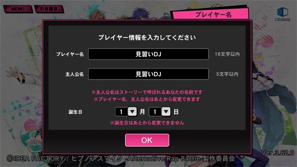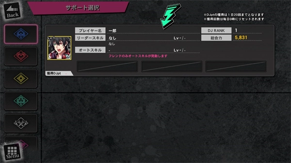 在催眠麦克风里设置应援卡,第一步要打开“MENU”菜单,接着点击第一个“个人信息”按钮。