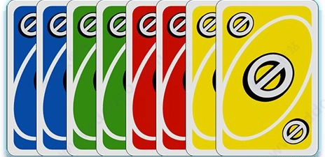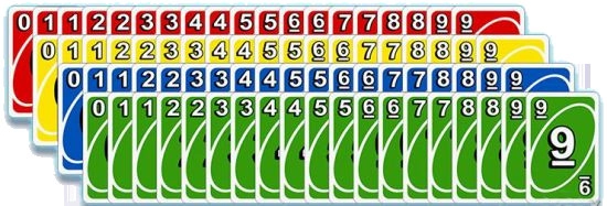 UNO牌共有108张卡牌,其中包含76张数字牌、24张功能牌与8张万能牌。另外,UNO牌的颜色分为四种,分别是红色、黄色、蓝色和绿色。
