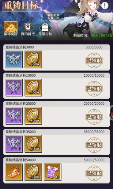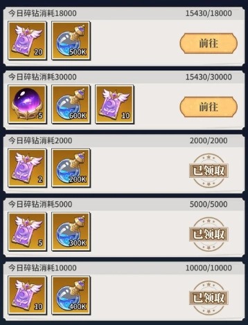 第七天的榜单统计的是钻石消费情况,因为当天是抽卡积分榜的最后一天,所以有多少抽就直接用掉吧。关键在于,第七天务必攒够8000钻石——爱丽丝升11星需要20个石头,前期不氪金的话只能靠购买获取,所以我会选择在第七天的钻石消费活动期间入手。分解6星其他系的卡片,爱丽丝能得到1250积分,攒够7500积分可以兑换一个,记得一定要分解6星卡;另外,7天下来阵营积分基本能凑够30,又能换一个,这样爱丽丝就能升到11星了。