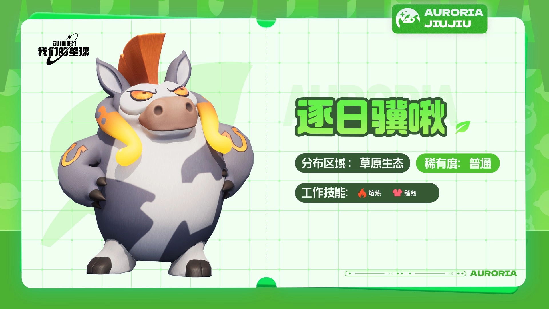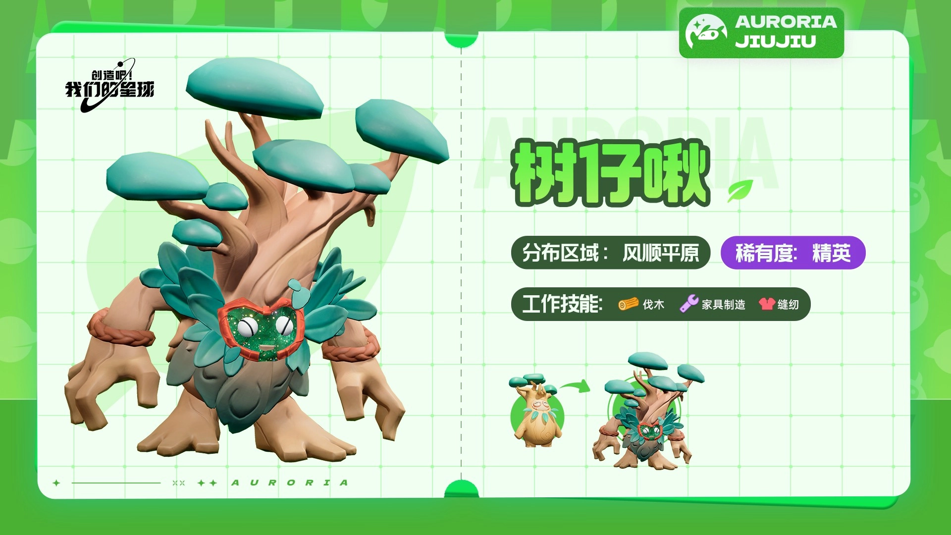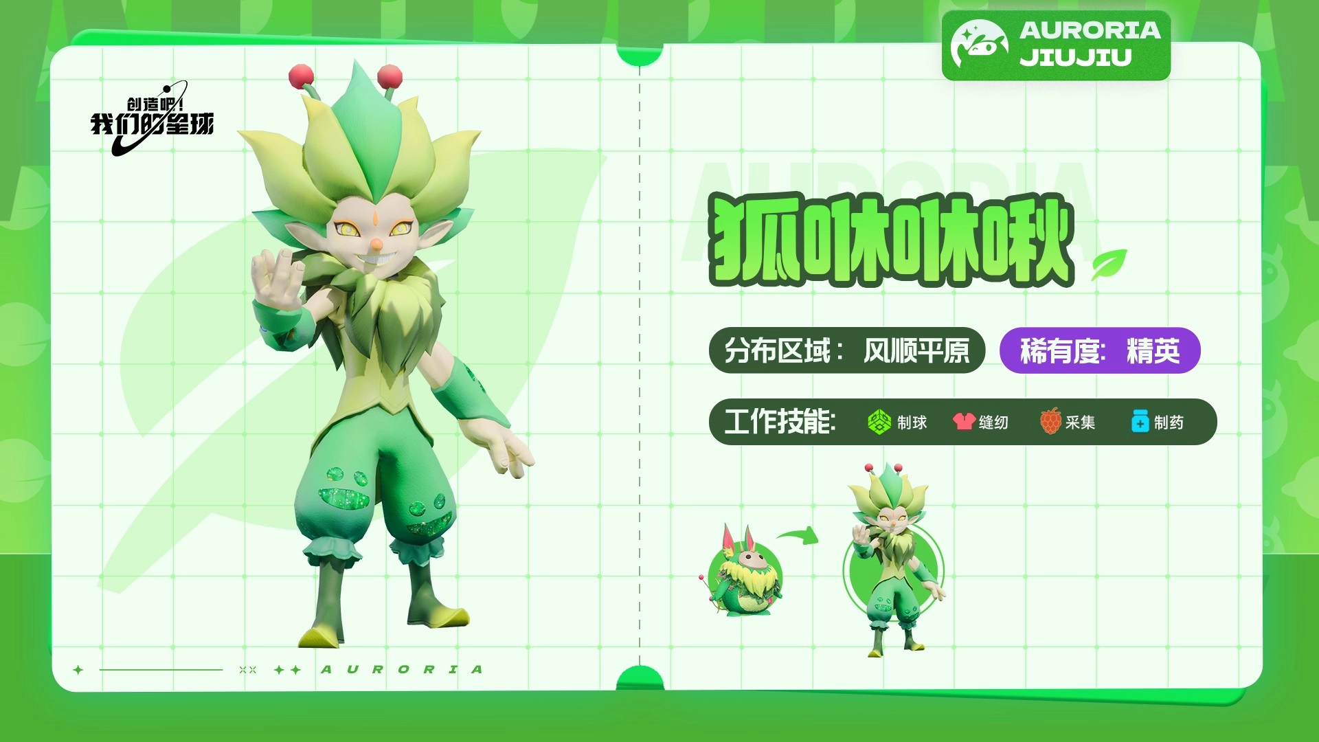 草属性的狐咻咻啾,常活跃于风顺平原区域。它浑身的绿色,能让它在绿色草原中更好地隐藏自己。