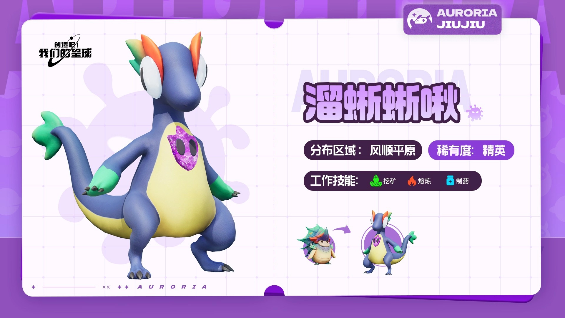 夜光蜥啾的眼神始终温柔且坚定,头顶的面具仿佛带有某种魔力,可帮助它更好地适应草原的生存环境。