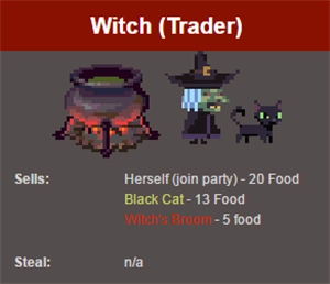 在交易者聚集地(Trading Camps)里,巫婆(Witch)需要用10个食物来购买。