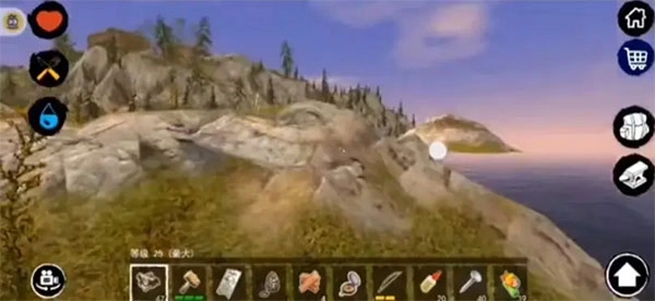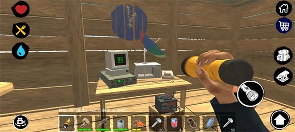你还得时刻留意屏幕右下角显示的饥饿、口渴与生命值状态。建造烧烤架来加工食物、搭建净水器来处理饮水,是生存下去的关键所在。另外要注意,背包的库存空间有限,得做好合理规划。