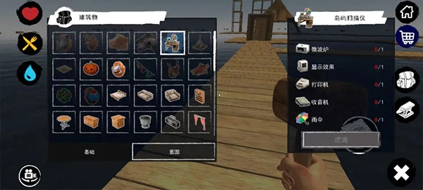 从一块小小的木板起步,你能够借助建造锤自由地拓展木筏,搭建起墙壁、地板、楼梯,还能建造烧烤架、净水器、小型农田,打造出专属于你的海上移动家园。