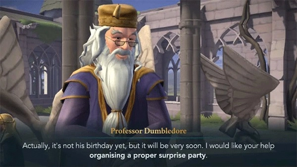邓布利多选中你,是因为他早已对你的热忱与创造力留有深刻印象,海格也对你颇有好感。你会得知海格最近痛失了一只最心爱的宠物。邓布利多会接着说明为何海格值得拥有一场生日派对——他会提到海格十分看重自身价值,还为霍格沃茨的每个人都提供了诸多帮助。之后他会询问你,海格希望在生日派对上吃到什么,你有三个选项可以回应。