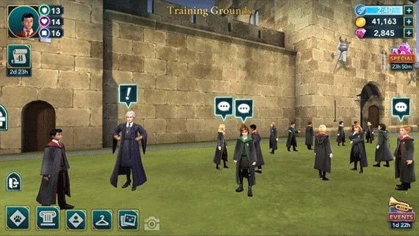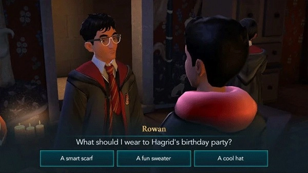 这次演练会以一名二年级学生的视角来介绍游戏。考虑到一年级及以上的学生都能参与冒险活动,所以依据你当前的主要故事推进情况,部分任务的星级与属性要求或许会存在差异。等你抵达那里后,就能和一些学生进行互动了。点击他们头顶的对话气泡,听听他们想对你说些什么。随后,邓布利多会告知你海格的生日即将来临,他希望你帮忙策划一场惊喜派对。