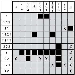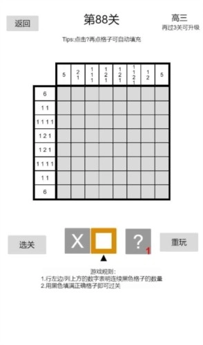 数字的准确位置通常能通过一排的格数和数字来推导,偶尔也会用到已确定的正格与负格,只有极少数关卡需要同时参考两排以上的信息。这让它的难度不会太高,本系列旨在帮助您从刚入门的新手快速成长为能推理大多数图形的高手。