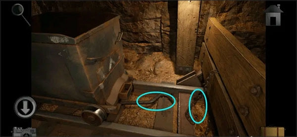 回到第一个路口,进入右侧的隧道。首先留意路边车轮上的提示信息,随后往隧道深处走,用断线钳剪断矿车上的「铁链」并取走,之后再将矿车下方的「撬棍」拿走。