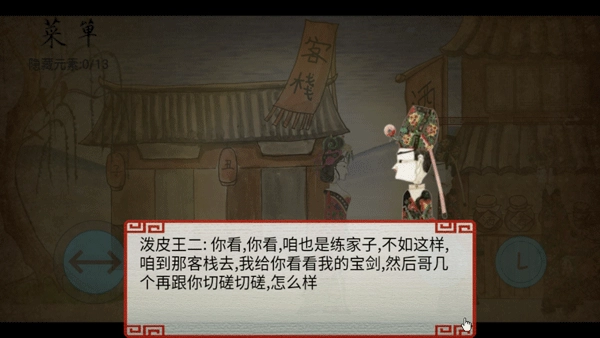 泼皮王二:你瞧瞧,你瞧瞧,咱也是懂功夫的练家子,要不这样,咱去那客栈里头,我给你亮亮我的宝剑,然后哥几个陪你过过招、切磋切磋,你看怎么样?