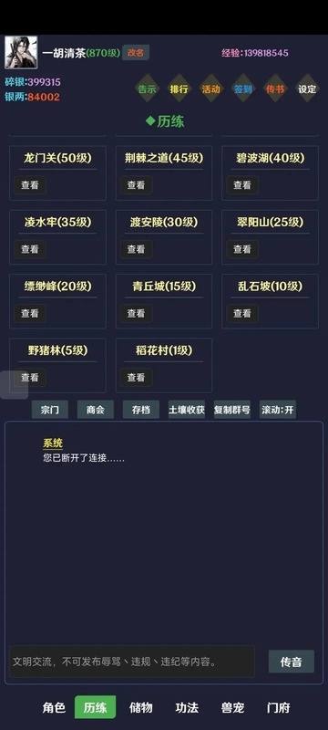 历练界面点击稻花村击杀鸡(6.4万只给巨额属性还有经验加成)