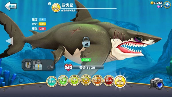 目前解锁新鲨鱼有两种途径:一是直接消耗钻石购买;二是先积累足够积分解锁对应型号,再用金币支付解锁费用。