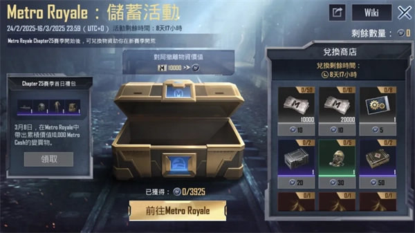 3月8日至3月16日,大家可以使用此前攒下的储蓄币,在活动页面右侧的兑换商店里换取游戏道具、地铁逃生物资之类的奖励!