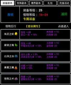 整体升级时,可依据当前拥有的材料情况来切换对应的副本,只要材料收集足够就可以进入下一个副本继续挑战。打怪时,建议优先选择等级比自身高出10到20级的怪物;如果能打过境界副本,那就优先挑战(不过在打之前,要记得把商城里能买的功能都买满)。一般来说,30到35级时可以打练气副本,35到40级打筑基副本,40到45级打金丹副本。通常情况下,只要武器强化到18级,45级去打金丹怪基本没什么问题。当打到需要的练气法宝后,要马上转去打筑基副本;打到需要的筑基法宝后,立刻转去打金丹副本。之后通过打金丹副本把境界提升到筑基1,再配置两件法宝,角色的属性会有比较大的提升。